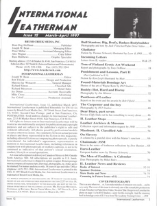 When Chris talks, in live sound, real dirty, he means it for real. When he squats back on his huge Sistine thighs, and porks his butt down on a big black dildo, he’s teaching bodybuilders who are artists and sculptors of the body something he feels is worthwhile. What he’s teaching about a postmodern masculinity, the viewer/voyeur can figure out for himself. On screen, Chris/Bull seems one minute an altar-boy, next minute a decadent priest, biker, or longshoreman. He is a shapeshifter, one of those erotic-athletic-worker heroes who is definitely the tough stuff of dreams and the noble stuff of ideals. He has “command presence” and “awesome mass”! No wonder that women, as well as men, like to watch Chris work on screen. (Mail can be sent to Chris Duffy c/o Jack Fritscher, Palm Drive Video, PO Box 193653, San Francisco CA 95472.) © 1997 Photos & Text Jack Fritscher