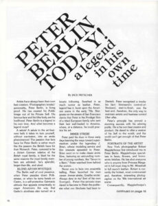 Artists have always been their own best creation. Photographer/model/personality, Peter Berlin, is living proof. He has created his Public Image out of his Private Self. His famous face and his lithe body are his livelihood. Peter Berlin is a legend in his own time. And what becomes a legend most?
